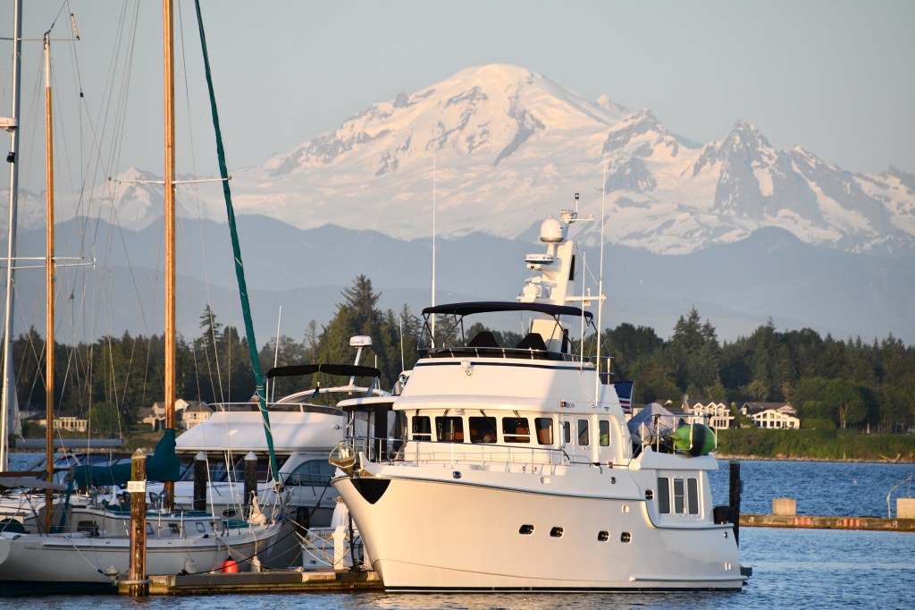 So here we go, welcome aboard! We departed from Shilshole Bay Marina in Seattle and cruised to Drayton Harbor, Semiahmoo Marina (Blaine, WA) to visit our friends who are making a life change for the summer months (selling their 44 DeFever Aft-Cabin and purchasing land in Concrete, WA). Semiahmoo Bay is beautiful with walking trails along the bay and a spectacular Mt.Baker back drop. Marilyn and Bill Hoober (Zula and Zeek are their traveling pups) have been boating friends for a very long time and we have enjoyed both cold and warm water diving with Bill. We will miss them on the water but are excited for them and their new adventures as dirt dwellers!