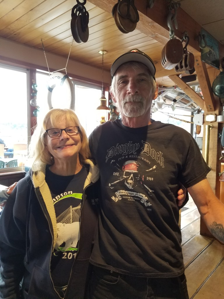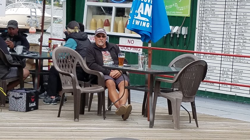 We checked into Canadian Customs in Nanaimo on Vancouver Island. The process required we dock at the Customs Dock and call the Customs telephone number. After a 15-minute wait on the phone, they cleared us. We anchored that evening off Newcastle Island and dinghied to the Dinghy Dock Pub on Protection Island for supper and of course, cold beer. Very fun!!