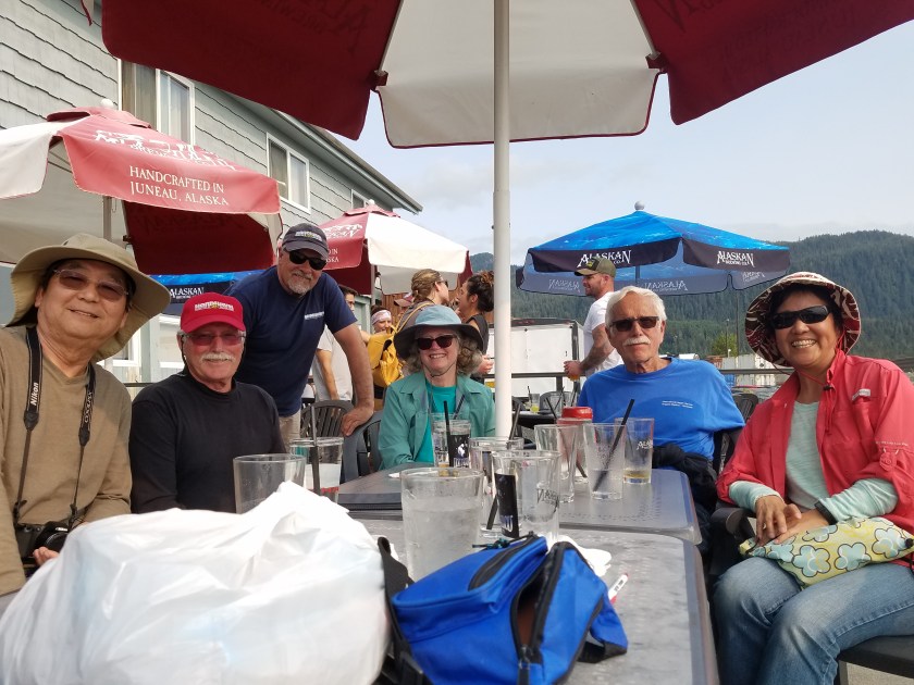 The 4th of July activities were quite interesting. A greased pole contest, lumberjack contest, axe throwing. In between contests Scott and I would walk to the Elks Lodge for Moose Drool! Like I mentioned, Wrangell has the feel of the Alaska Frontier! We spent time with Toru and Chizuru on Chisato, Monica and Larry on Gryphon and our new friend Frank on Island Greeter.