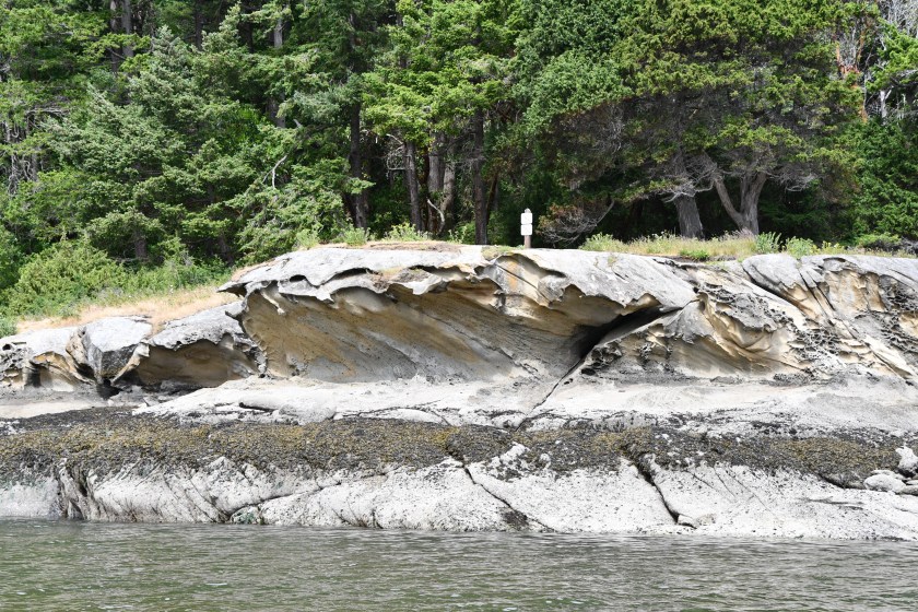 We spent a couple of nights anchored on San Juan Island, Roche Harbor and Sucia Island in Echo Bay. We departed Echo Bay early in the morning. Mid-morning (I was taking a nap in the pilothouse and Scott was at the helm) Scott yelled, Ab, Ab, get up! We have someone here!! I woke quickly and looked out the pilothouse confirming that we were in the Strait of Georgia. Somehow, “we have someone here” just didn’t make sense. Scott slowed our boat down and opened the pilothouse door. A large inflatable boat with US and BC police markings came along side and asked us some questions – did we own the boat, what was our destination and how many crew were on board. Our answers must have been satisfactory or we weren’t who they were looking for so they thanked us and took off! Very strange.