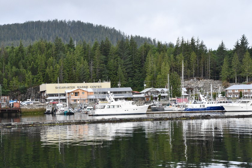 Tongass Narrows is the transition from crossing Dixon Entrance to arrival in Ketchikan. As we got closer to the city, changes from remote and unspoiled to civilization began to appear. When we arrived, 5 cruise ships were moored in Ketchikan. Cruise ships are an imposing sight, towering 10 stories high and dwarfing the city. The cruise ships can carry 2000 passengers each. You do the math, that’s a lot of people! We were assigned a slip in Bar Harbor South, not too far from town. We stayed 3 nights, visiting the town in the afternoons, after the cruise ships departed. We enjoyed exploring town, shopping for t-shirts, and visiting with the locals. We also made a trip to Safeway to stock up on produce and liquor store for beer.
