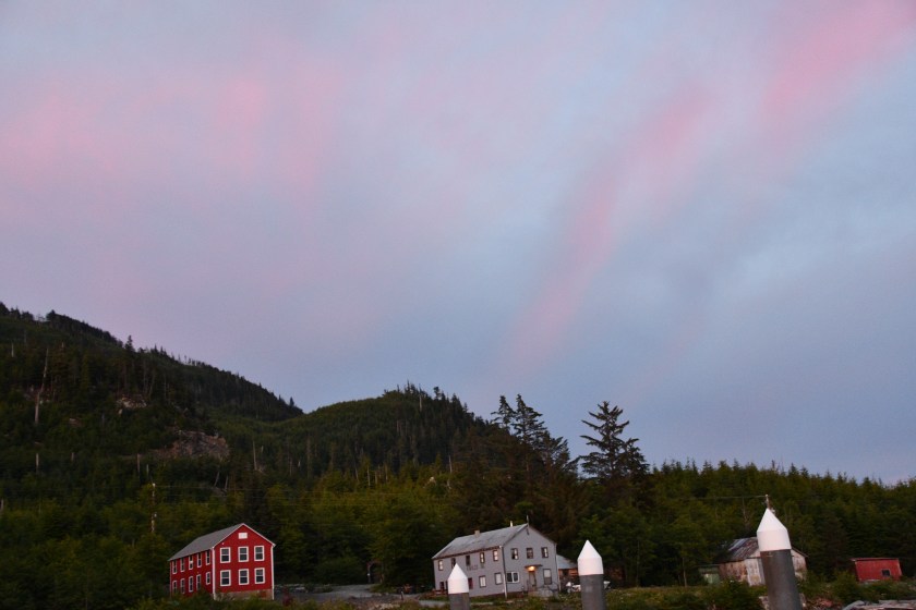 From Petersburg we cruised Clarence Strait. We were enjoying the long days, beginning the day at 5:00 am, docking at Thorne Bay by 7:30 pm. Still day light! We read that the city of Thorne Bay was once the largest logging camp in the US and used by cruising boats as a communication and supply center along this part of the Inside Passage. Fun and maybe supper in town! So we tied up to the dock and started the short walk into ‘town’. We were greeted by the Liquor Store owner who barked “You are late!” And I guess we were. The town was closed up tight! Supper on the boat.