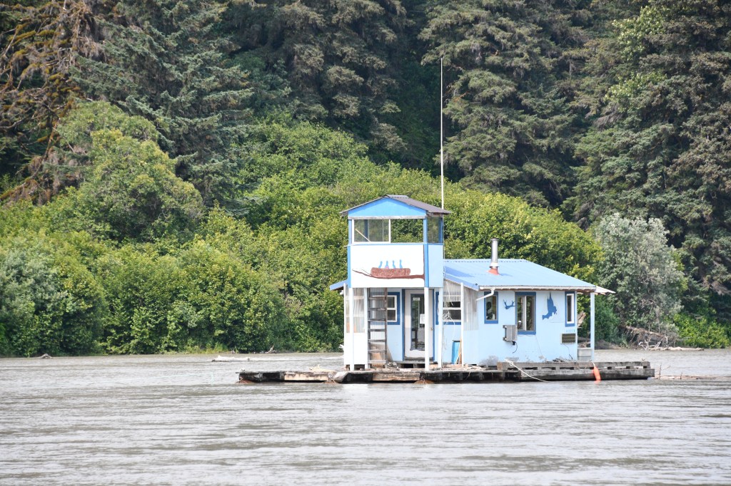 From Ketchikan we crossed Clarence Strait into Kassan Bay, a very small village on the east side of Prince of Wales Island. I read that the Kassan village had a cannery and some boom and bust periods with a population of 500 when the cannery was operating years ago. We tied up to a Public Dock and headed up to investigate how to pay for the moorage. Here we were, back to remoteness. We finally located someone who told us moorage was free and to be sure to visit the longhouse and cemetery along the boardwalk. We walked the boardwalk, past the Trail Café, open only on Friday and Saturday, to the long house, totem poles and the cemetery. The first tribal Chief of Kassan, Chief Sonihut is buried in the cemetery. Returning to the boat, a man sitting on his front porch yelled a greeting to us. We stopped and chatted for a time. “Skip” built his home many years ago, by hand, out of materials he brought by boat to Kaasan. His little home was decorated with crabbing buoys and driftwood he found on the beach. He invited us in, insisted we listen to his Bose Speakers, and gave us a tour of his garden. He had “wacky plants” growing in his garden along with tomatoes, lettuce, squash, beans. Skip was certainly living off the grid, but looked forward to the infrequent visitors he encountered. Thank you Skip for your hospitality!