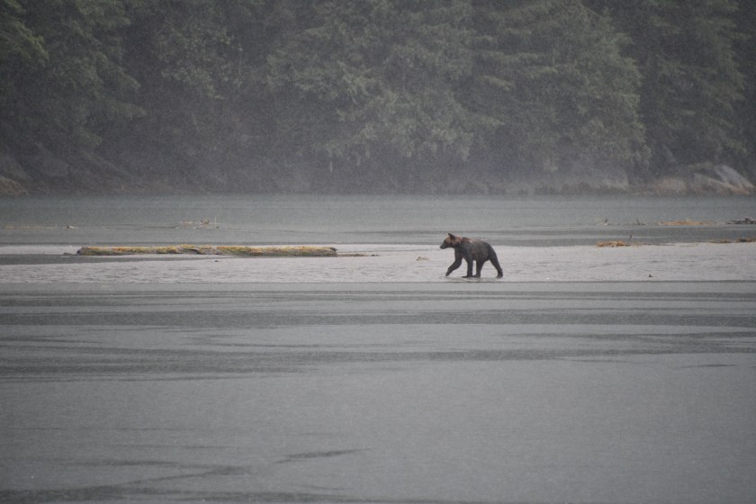 The north end of Fitz Hugh Sound divides into two channels. We continued to Fisher Channel which is a continuation of the “Inside Passage” route then to Lama Passage into Shearwater Resort and Marina. The day was nasty, rainy and cold and we were fortunate to get a slip in the marina. We enjoyed a happy hour with Neil and Dianna on Plamor, Park and Carol on Akeeva N50 who we also know from Anacortes, and new friends Toru and Chizuru on Chisato N40, and Larry and Monica on Gryphon N46. A Nordhavn gathering of sorts!
