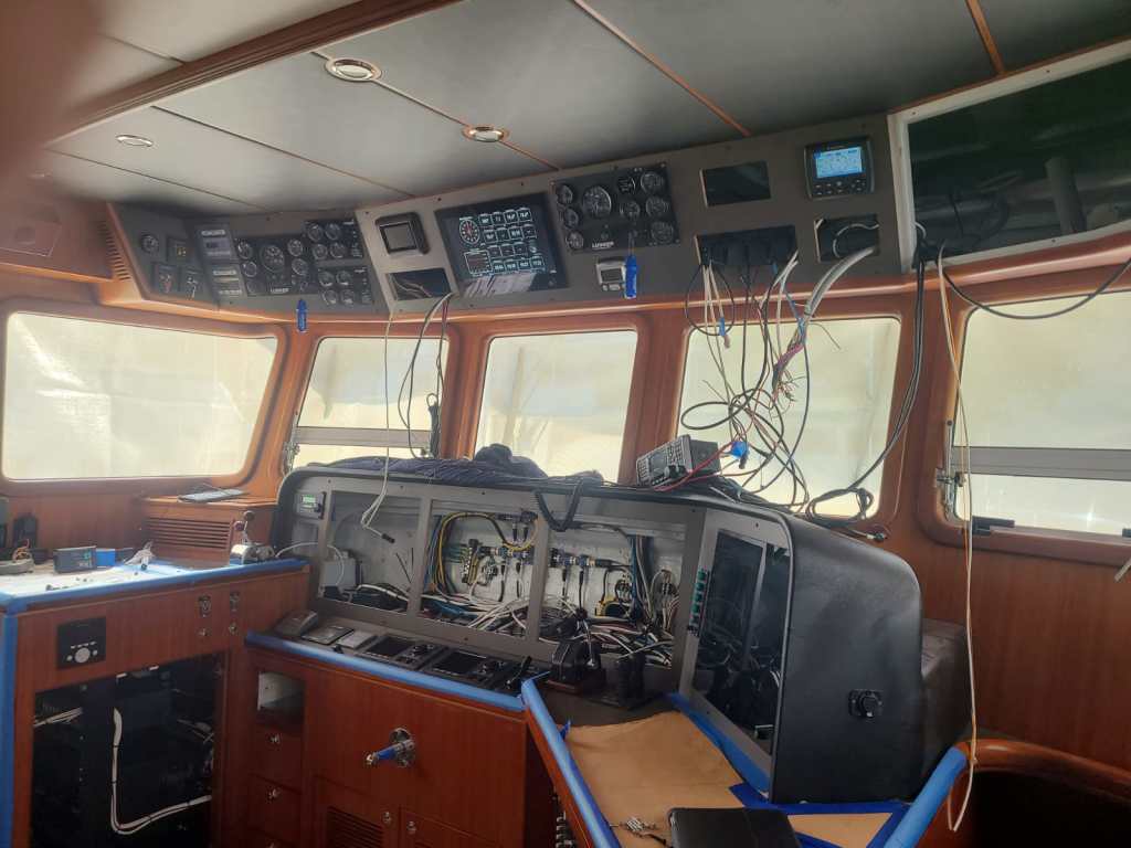 Orenda was likely commissioned in 2009 we think, and at that time was outfitted with state of art electronics like Black Box chart plotters, gyro compasses, sat comms, commercial radars, etc. Like most boats of this vintage, past owners have taken the original navigation suite and made enhancements with modern technologies. That was exactly the state Orenda was in when we bought her. A lot of the original equipment was still in service and working perfectly but AIS, autopilots and PC based navigation equipment had been added over the years. She worked very well and we would have kept using her the way if the lightning related damage had not occurred. Because lightning damage is so unpredictable and has been known to show up much later than the original event, the refit replaced all of the navigational equipment and interconnecting wiring and interfaces. It is a huge job to do right and takes many labor hours to accomplish. I’m sure if Scott was writing this post, he could go on for pages about what he did and why, but perhaps the included pictures help show a pretty good example of how much work this involves. Anyone wanting more information on the specifics please feel free to reach out to us, we are happy to share more detail.